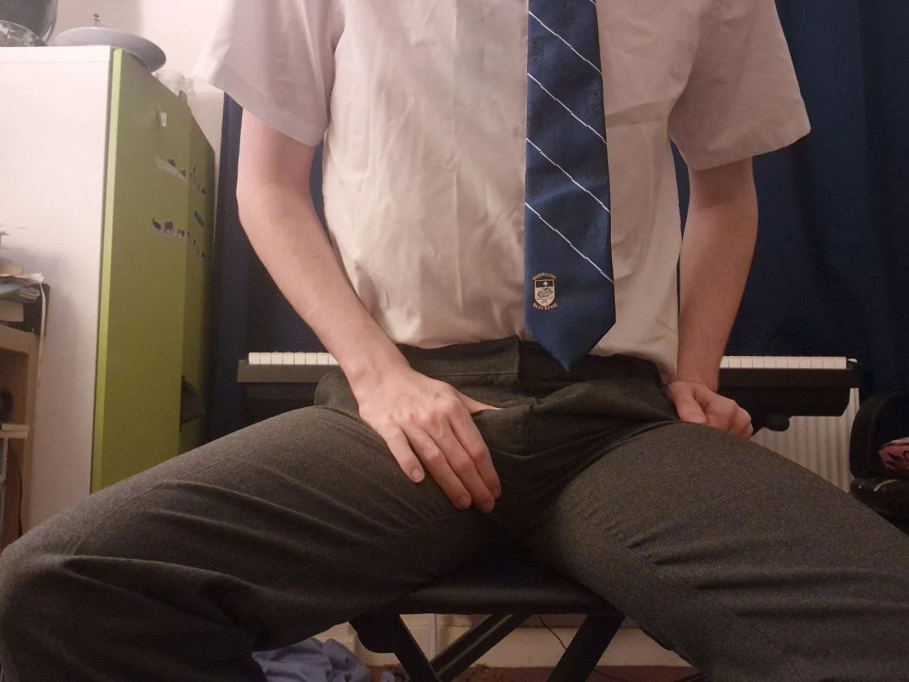 Back in his school uniform