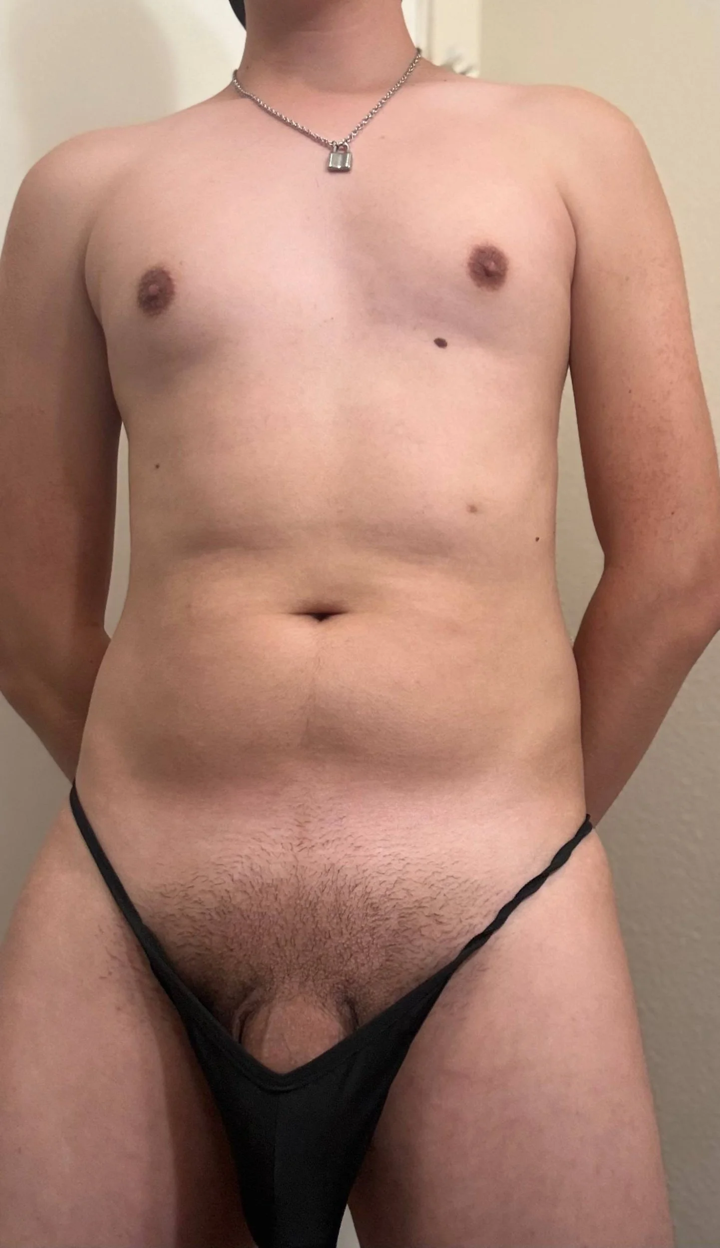 Jordy’s in too deep to pretend otherwise. His boyfriend thinks he’s just washing his hands. That the muffled sounds behind the locked door are normal water running, maybe a cough, nothing suspicious at all. But what he doesn’t know is that Jordy isn’t even facing the sink. He’s bent over with his ass pressed against the cool tile, that flimsy string bikini doing absolutely nothing to hide how wet and tight his little pussy gets when I tell him to spread. One hand muffling his moans, the other tugging those strings aside so I can see exactly what belongs to me—pink, shaved, dripping just from being this close to getting caught.